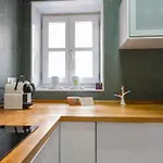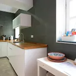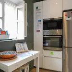 - ❓Existe uma cozinha disponível neste apartamento para uso dos hóspedes?Sim, este apartamento está equipado com cozinha totalmente equipada e oferece chaleira elétrica, refrigerador e forno.